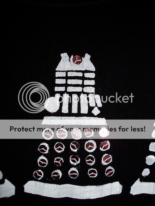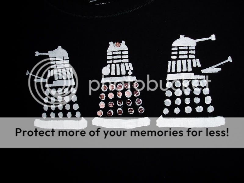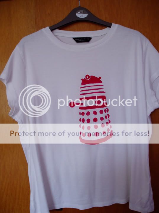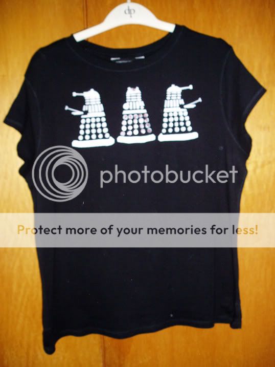 4. Sequinned t shirt for me. Hurrah. Three white daleks, but the middle one has sequins.